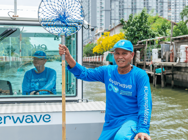 With the help of waste collection boats, everwave prevents waste from entering the oceans. The company pursues a multi-layered approach: the focus is on avoiding plastic and waste that could end up in the oceans via rivers. Artificial intelligence supports the cleanup missions by identifying and analyzing the waste. The collected material is then recycled using environmentally friendly processes.