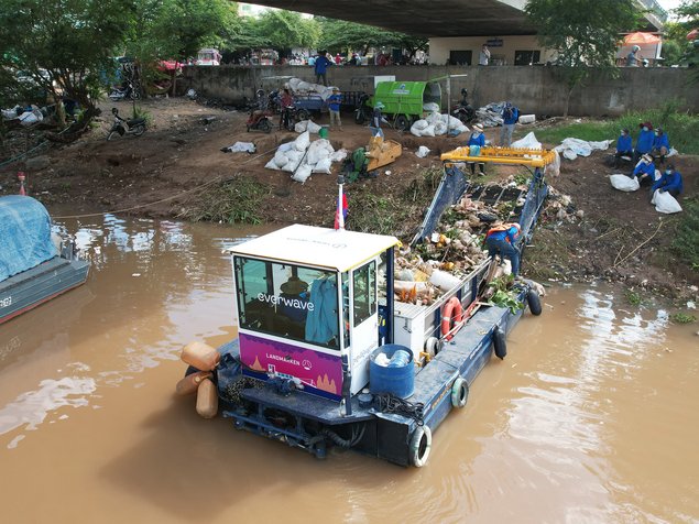 everwave cleans up the environment: garbage boats are used to prevent waste from entering the oceans. Artificial intelligence assists in the cleanup missions to detect and analyze waste. The collected material is then recycled through environmentally friendly processes and, in addition, the public is made aware of environmental issues. The start-up is organizing long-term and holistic Cleanup Projects e.g. in Thailand, Romania or Cambodia to ensure clean waters. Until today everwave has already collected over 1.6 million kilograms of waste from rivers.